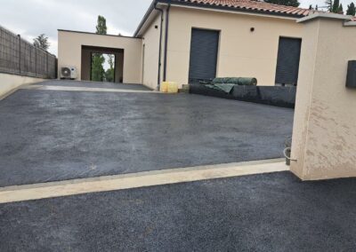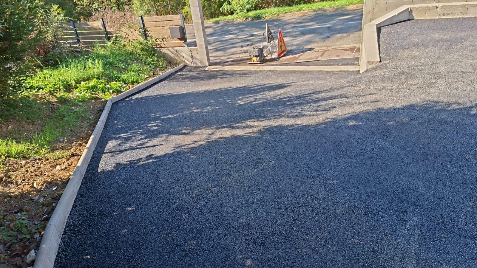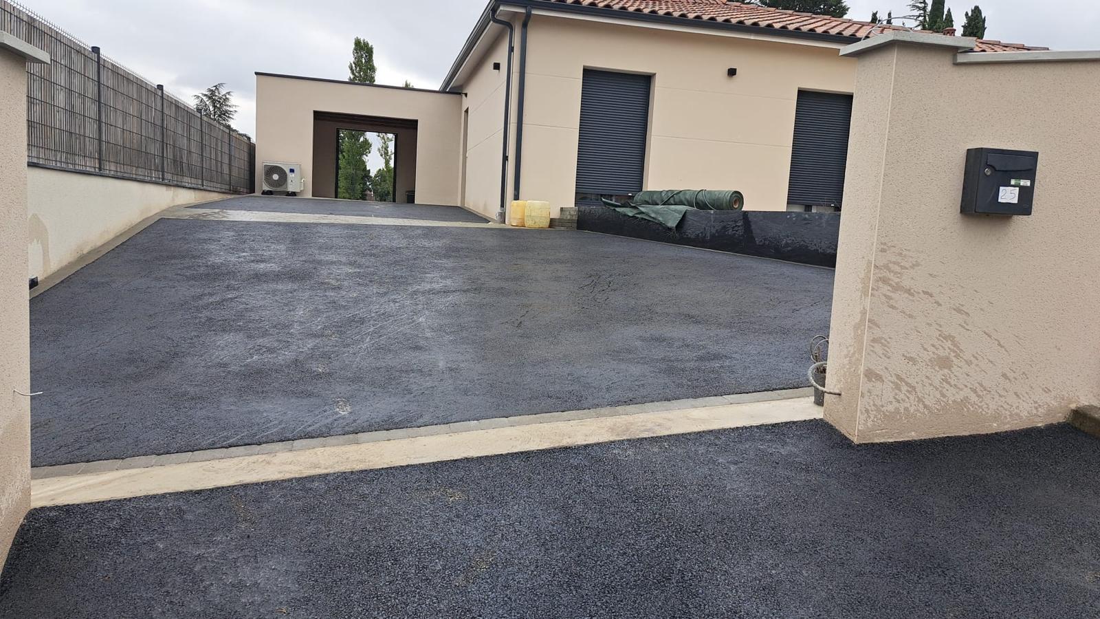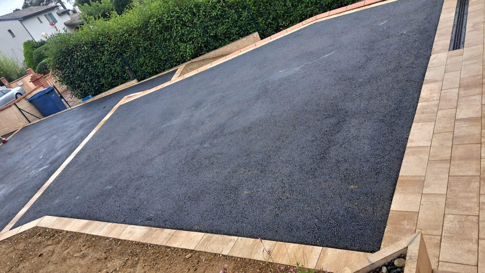 Réalisation d'une cours de villa en enrobé à chaud avec bordures pavés