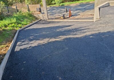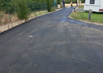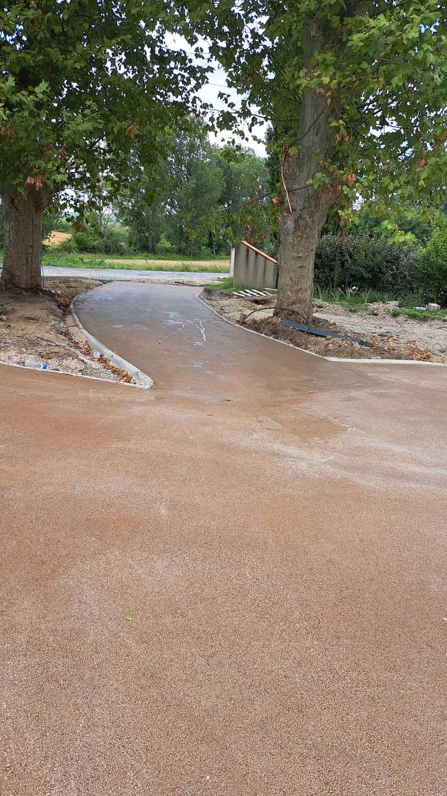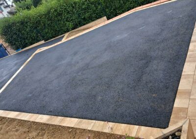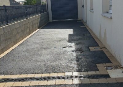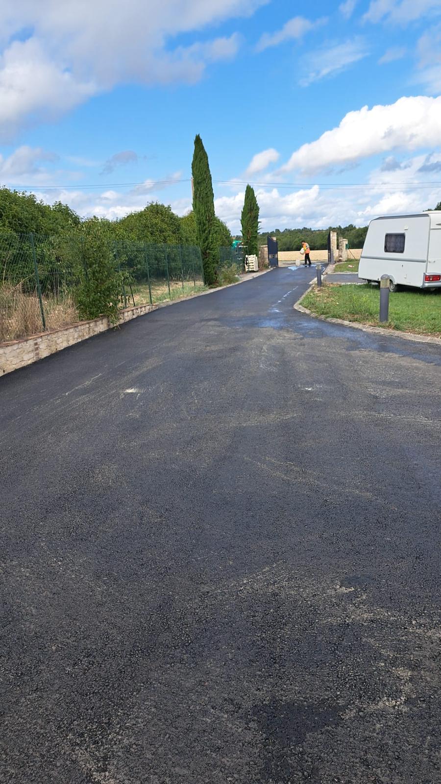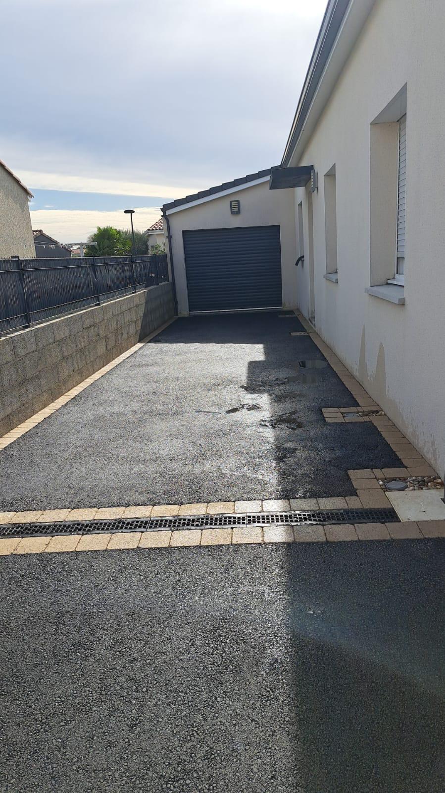 Réalisation d'une cours de villa en enrobé à chaud avec bordures pavés
